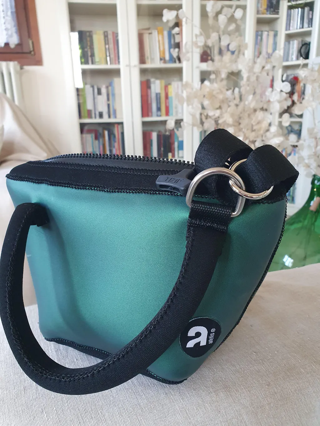 La borsa è sicura per brevi immersioni fino a 1 metro di profondità. Oltre questa soglia, mentre la borsa mantiene la sua integrità, la pressione potrebbe invece danneggiare gli oggetti al suo interno. Per questo consigliamo l'uso per attività di superficie o immersioni poco profonde, come SUP, kayak, o giornate in spiaggia. Per le immersioni subacquee, consigliamo attrezzatura specifica.